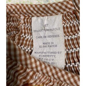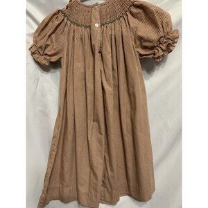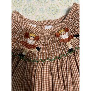 Child's Silly Goose Dress 4T Hand Smocked Brown Gingham Cheerleader Design