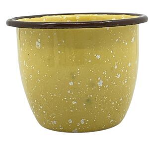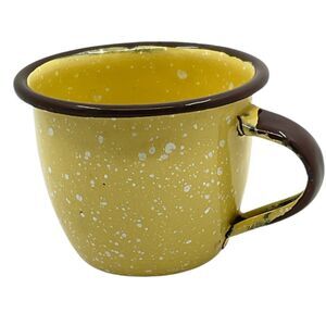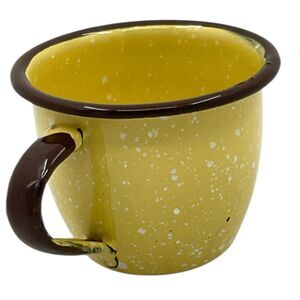 Childs Yellow Brown Rim Graniteware Coffee Cup Enamel Speckled Vintage Kitchen
