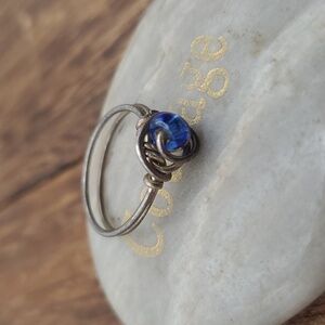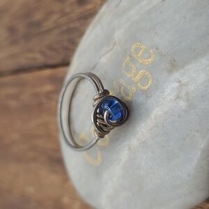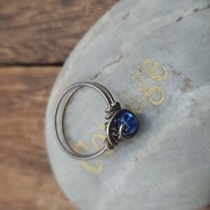 Childs pinky ring equivalent to size 2.5 sterling wire wrap cerulean stone R633