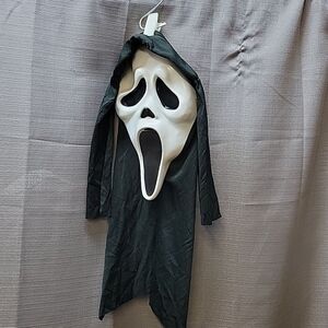 A child's size large Totally Ghost costume. It comes with a one-piece Rubie's hooded robe. The hood has some snags/runs on it but no holes. It comes with a ghost mask