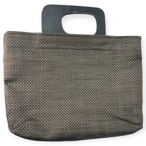 Chilewich Woven Large Sized Hand Bag Purse Beach Wooden Handle Asymmetrical Mod