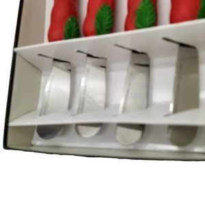 * Description: Handles designed like chili peppers. Hand wash in warm soapy water.