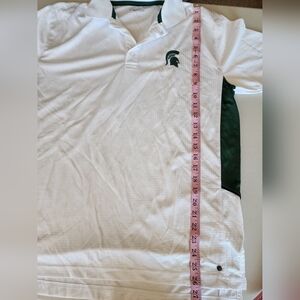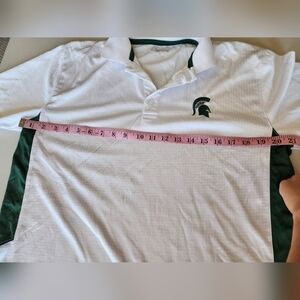 Used men's Msu golf polo. There is a little yellowing on the collar. It would probably come out with a stain stick.