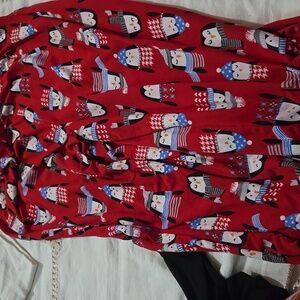 Black long sleeve top with large penguin graphic with a speech bubble saying "Chill". Around the neck there is sparkly stitching.
