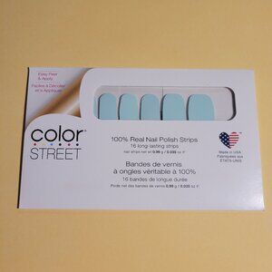 This set of 16 long-lasting, 100% Nail Polish Strips package includes an alcohol pack and one file. Light Bluish