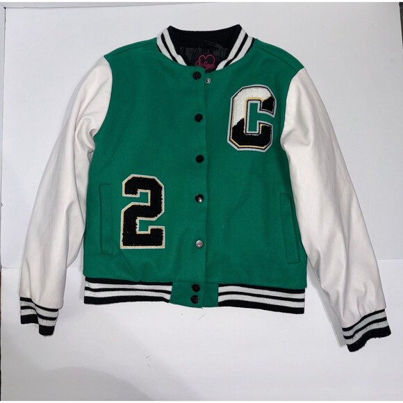 Chillipop Girl’s woolen Varsity letter jacket, streatwear, green jacket sz 10/12