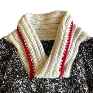 Chilly Dog 100% Wool Hand knit Boyfriend Sweater Shawl Collar Classic Fair Trade