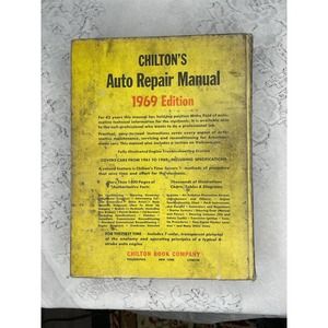 This is a very nice used repair manual concentrating on the 1969 car models as well as previous years. This is not a new manual but it is a gently used manual. The photo shows the condition of the manual by the condition of the cover. Those who repair vehicles know the reputation of the Chilton's manuals. A nice book.