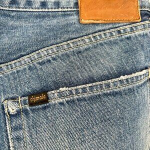 Chimala Mid-Rise straight leg Jeans. Light Blue. Size: 27. Measurements taken: 29"inseam, 12" front rise, 15.5" back rise, 14.5" waist (flat), 7.5" sweep, 38.5" side seem