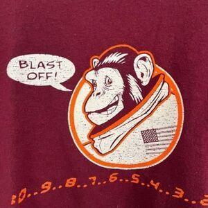 Vintage Chimpanzee Launch Rocket Burgundy Short sleeve T-shirt. Size Small.