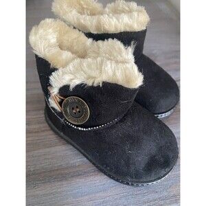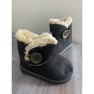 China Buttons City fuzzy Winter Pull on boots Black size 22 / 6 US baby boy girl