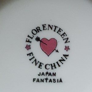 Floral design on this set is soft color of pink and blue . Tops of containers are lined with 'silver'. Maybe someone has the set of China this goes with? It is very pretty.