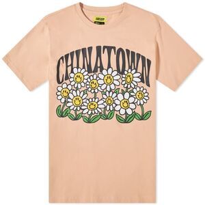 Chinatown Market Smiley Flower Power Tee. Peach with white daisys graphic short sleeve t-shirt.