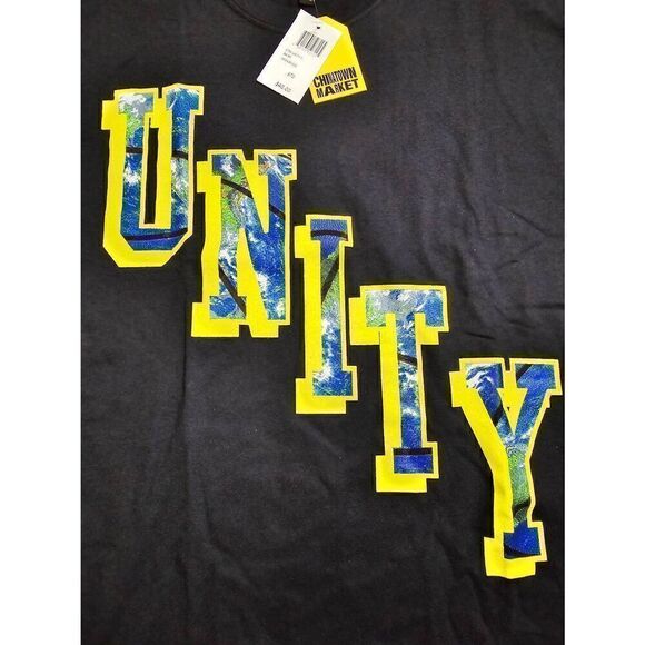 Dark blue Chinatown Market shirt with "Unity" graphic on front.