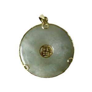 Chinese 14k Gold Wrapped Round Jade Pendent With Pearl and Multi Gemstones