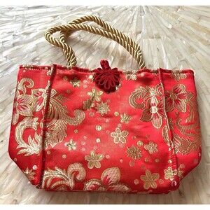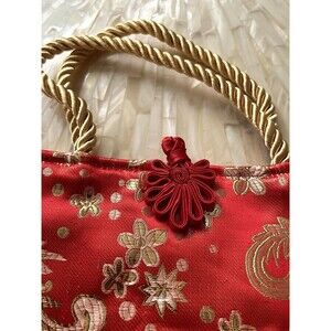 Chinese Bag Small Tote Red Gold Floral New Year Evening Purse Double Handle New