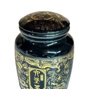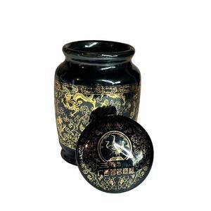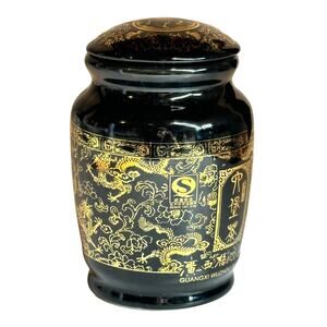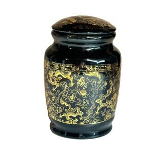 Chinese Black and Gold Porcelain Jar Dragon Patten Pot Tea Caddy 5” tall Rare