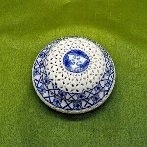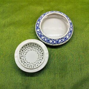 Chinese Blue White Porcelain Reticulated Covered Round Box