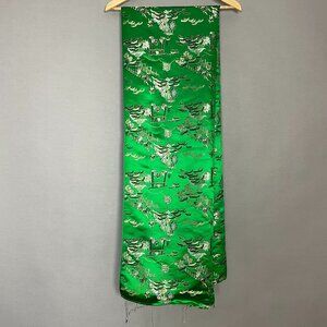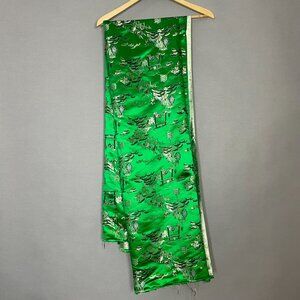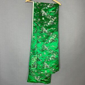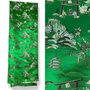 Chinese Brocade Fabric Bright Green 2 Yards Oriental Asian Chariot Scenery Print