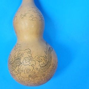Chinese Carved Dragon Gourd Branched Horns Writing 7 in. High Real