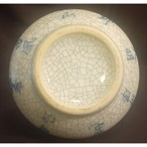 Chinese Ceramic Vase Crackled Glaze w/ Writing 5" Tall by 5" Wide Mint Condition