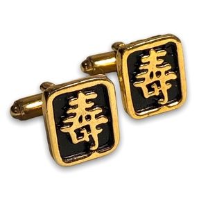 Chinese Cufflinks "Life" Symbol Black Gold Toned Jewelry Menswear Mens Mandarin