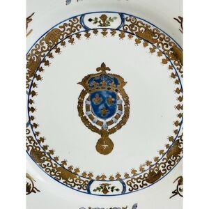 ChineseExport,ArmorialPlate,VintagePorcelain,FloralDesign,12Inch,CoatOfArms,CollectiblePlate