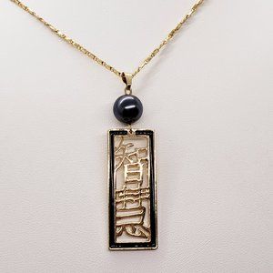 Chinese friendship and wisdom Pearl Necklace. The pearls are 10mm in size, color enhanced mother of pearl shells. The gold plated necklace measures 21 inches with a 3 inch extender attached for your adjustment. You can easily adjust the necklace to your fitting up to 24 inches in length.