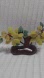 This product is a unique and handmade Chinese jade glass bonsai tree featuring Asian yellow flowers, set in a wood stand with a mid-century vintage design. Made in China, this piece reflects the traditional Asian culture and craftsmanship. The intricate details and colors of the bonsai tree make it a stunning collectible item for those interested in Asian cultures and ethnicities. Measures approximately 5.5 x 7.5 inches.