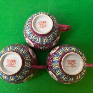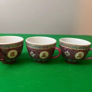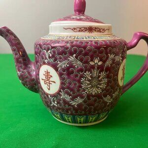 Chinese Jingdezhen Mun Shou Longevity Porcelain teapot, cups, plate