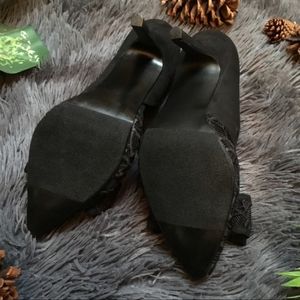 Sexy lace heels. They have never been worn which makes the new. These are a game changer. Unfortunately they do not support my weight so I find they difficult to walk in ( for me). The do not come in it's original box. Coming from a smoke free odor free home. By the way these are 4" heels.
