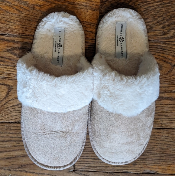 faux fur slippers L/XL roughly 10-11 out of bag, but like new