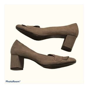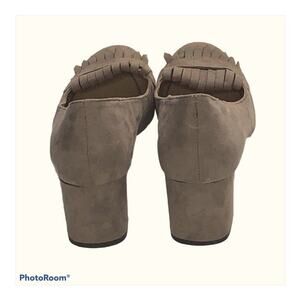 Chinese Laundry Anete Taupe Fringe Block Heel Pumps Size 6.5 Suede Boho Chic