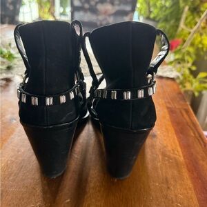 Chinese Laundry Black Ankle Boots with Silver Stud Accents Strappy Pointed Toe