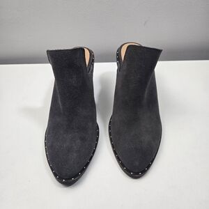 Elegant black suede mules with a sleek design. Perfect for versatile styling.