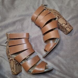 Chinese Laundry Bonafide Hazelnut Snakeskin Print Strappy Heels 8