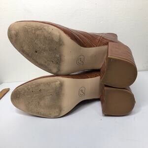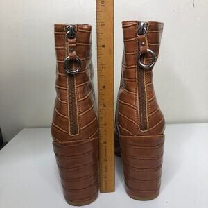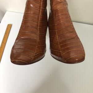 Chinese Laundry Boot Tan Croc Faux Leather Mid Ankle Shaft Block Heel 7