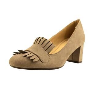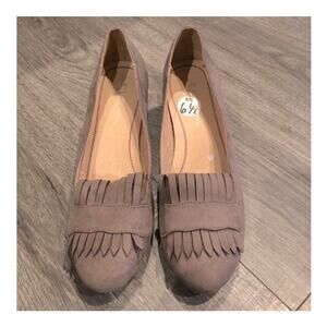 Chinese Laundry CL Anete Fringe Micro Suede Taupe Block Heel Pumps Size 6.5