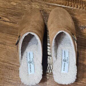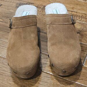 Chinese Laundry Carlie Tan Mule Clogs With Nail Head Accents Sherpa Lining