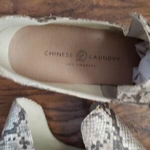 Chinese Laundry Cream Metal Snake Mali Pointed Toe sz 10 (41) Women's Ma…