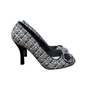 Chinese Laundry Cutie Tweed Kid Fabric Button Heels 7.5