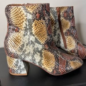 Chinese Laundry Davinna Yellow Brown Snakeskin Low heel ankle boots Size 5.5