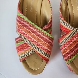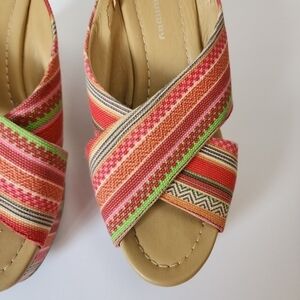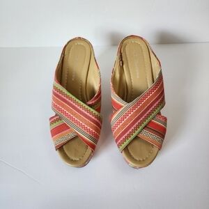 Chinese Laundry Drama Peep Toe 4" Heel Crossover Strap Wedge Size 8
