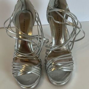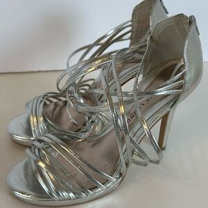 Chinese Laundry Formal Party Silver Strappy 4.5” Heels Sz 10 M