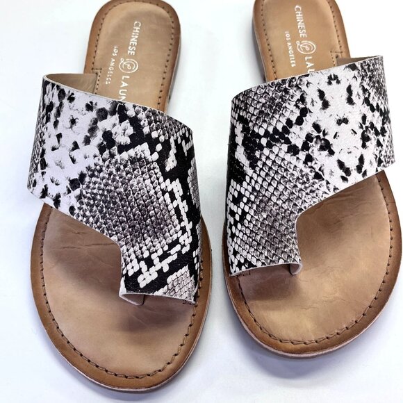 Chinese Laundry Gemmy Sandals Size 7.5 Black and White Snake Print Leather
