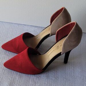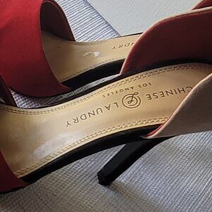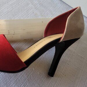 Chinese Laundry Heels Suede Red Tan Closed Point Toe Dress Shoe