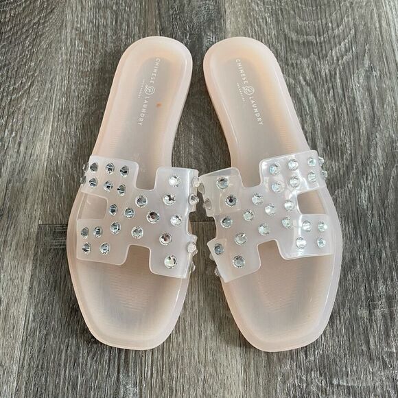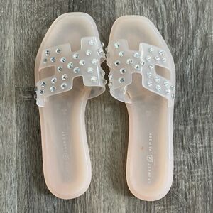 Chinese Laundry Light Pink Transparent Studded Jelly Slide Sandals