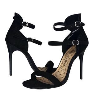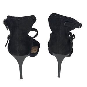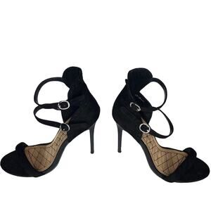Chinese Laundry Lolita Black Suede Heels Caged Ankle Strap Stiletto Size 7.5