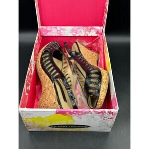 Chinese Laundry Patent Leather Wedges Cork Heel Sling Strap Size 8M Festival