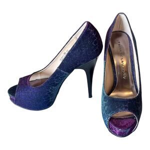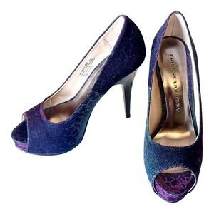 Chinese Laundry Platform Pumps Hot Spots Shoes Women Sz 6 Peep Toe Blue Purple